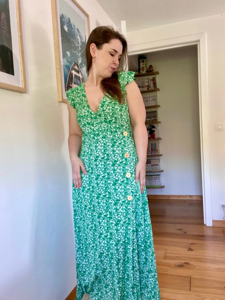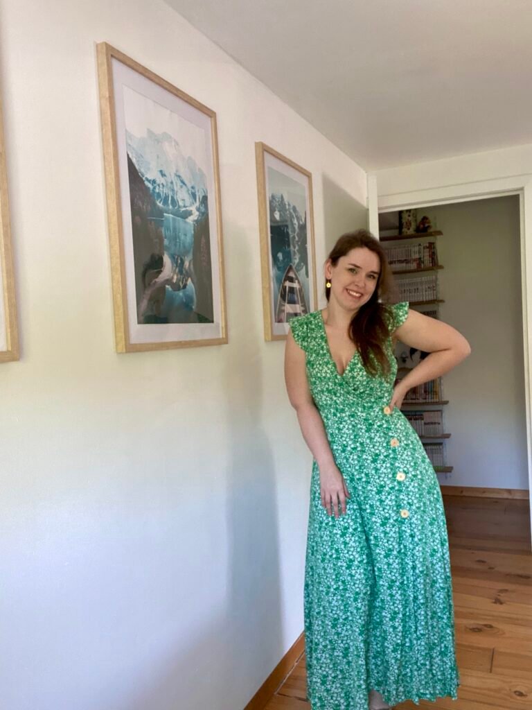 La robe Alix est le dernier patron de la marque Cha’ Coud que j’ai reçu de mon compagnon pour Noël et, on va être honnêtes, je n’allais pas la coudre en plein mois de mars avec 0° affiché au thermomètre :D. J’ai attendu les beaux jours pour pouvoir la coudre et la porter dans la foulée, c’est mille fois mieux non ? C’est la première robe longue dans ce style que je couds et, histoire de vous mettre un petit peu l’eau à la bouche pour en savoir plus, j’ai adoré le système de fermeture. Pas de zip invisible cette fois mais je vous laisse découvrir par vous-même 😉